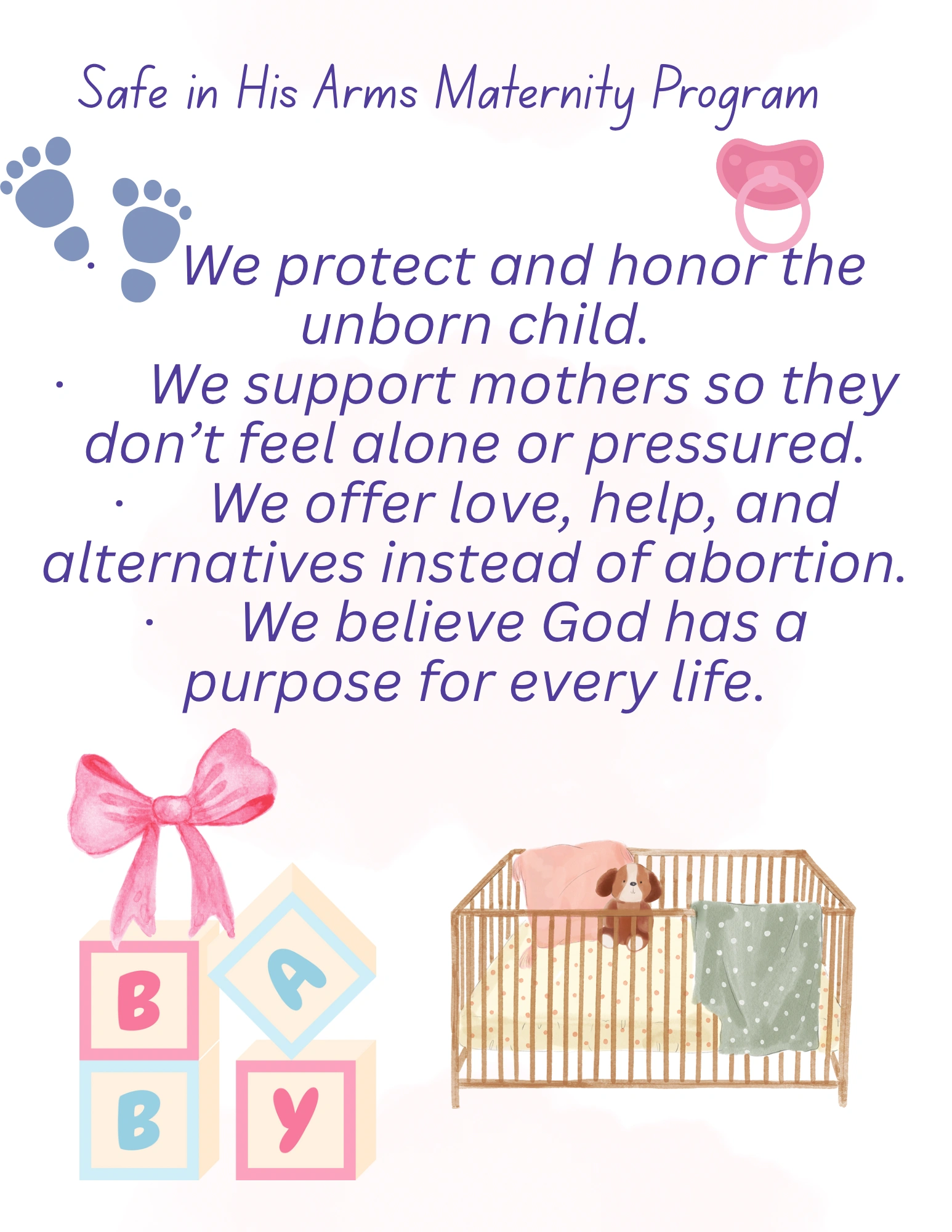 Our mission is to provide safe shelter, compassionate support, and empowering resources for pregnant women, mothers, and children in crisis—helping each family find stability, dignity, and hope for a brighter future.”